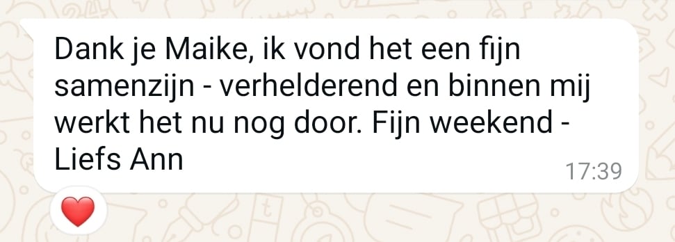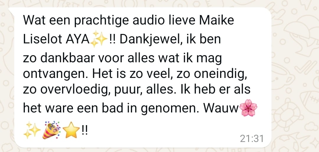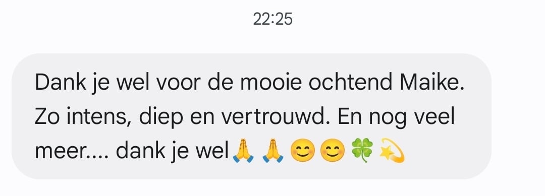 Dear Maike, woooow, I’m still completely glowing from yesterday. So valuable and such a gift for me… It feels as if everything is falling into place. I feel it flowing within me like never before.