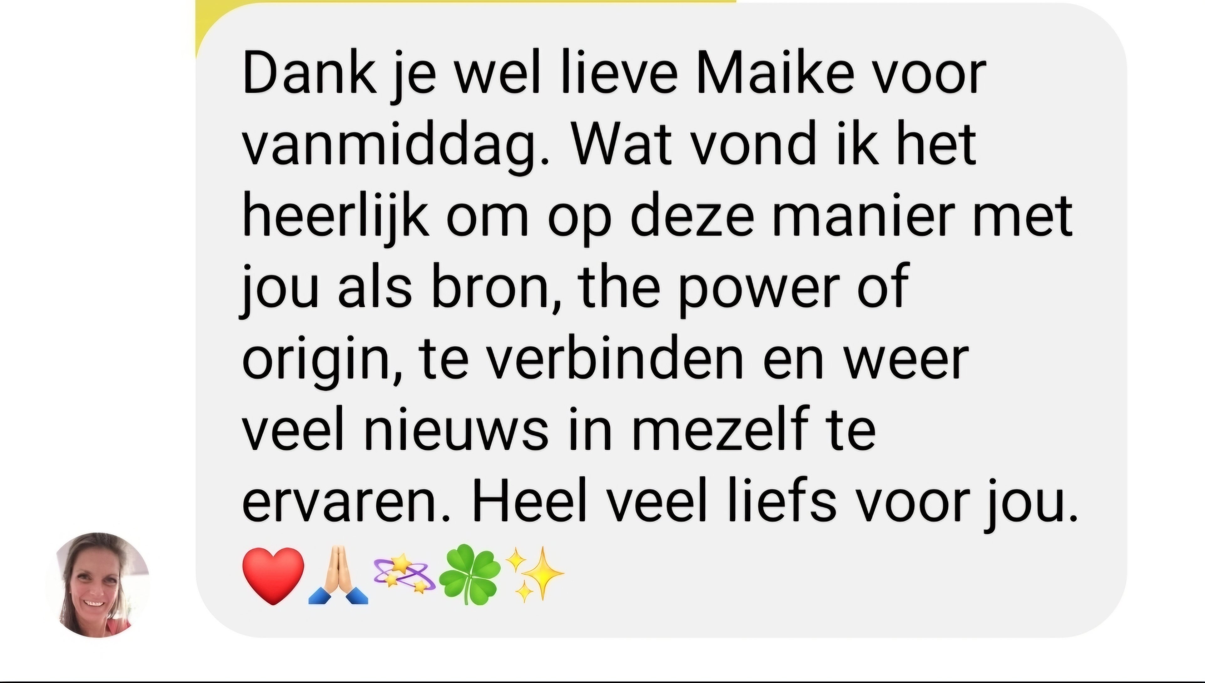 Thank you so much, dear Maike, for this afternoon. I so loved connecting in this way with you as the source, the power of origin, and experiencing so much new within myself again. Lots of love to you.
