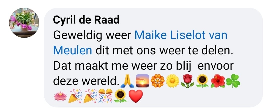 Wonderful once again, Maike Liselot van Meulen, to share this with us. It makes me so happy again — and happy for this world.
