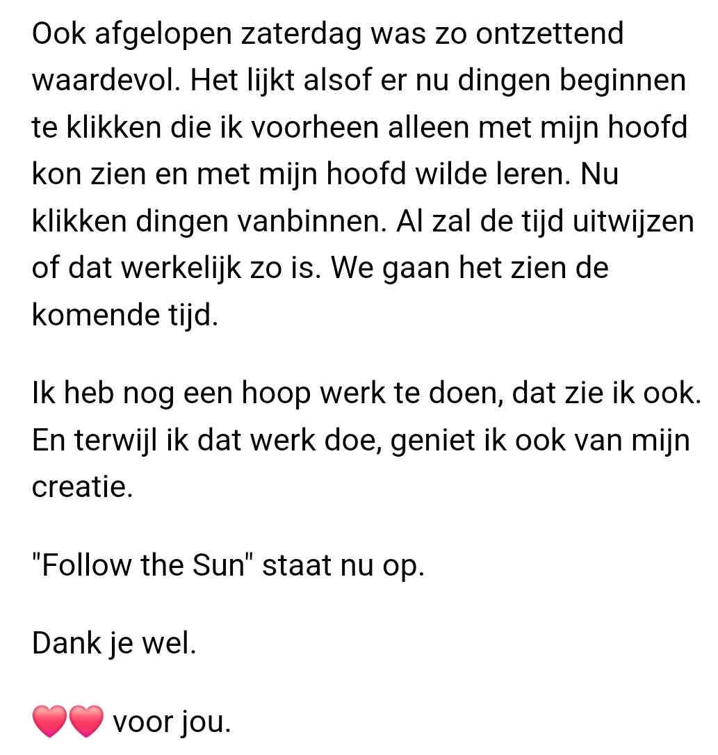 Last Saturday was also incredibly valuable. It feels as if things are now starting to click that I used to understand only with my mind and tried to learn with my head. Now things are clicking from within. Although time will tell whether that is truly the case. We’ll see how it unfolds in the coming period.