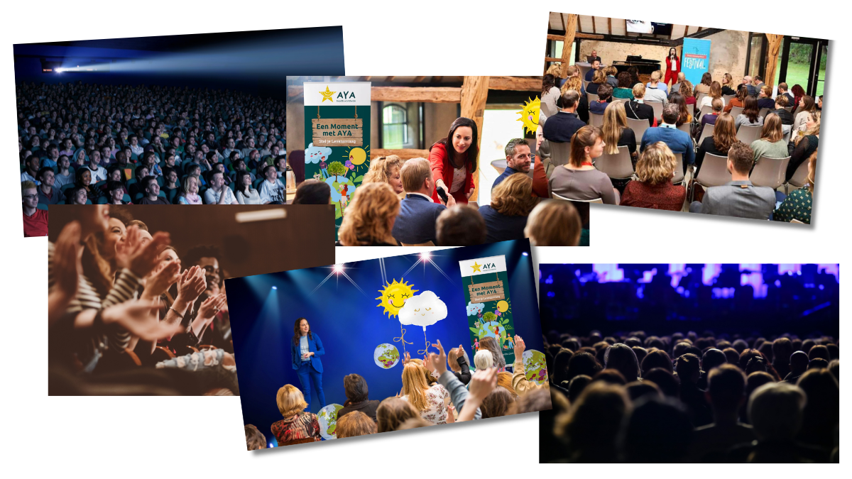 AYA ziet alle energie in de zaal. Zo zorgt ze ervoor dat de inhoud van de voorstelling aansluit bij de aanwezigen, zodat iedereen exact hoort wat hij of zij op dat moment kan gebruiken om voorwaarts te blijven gaan.